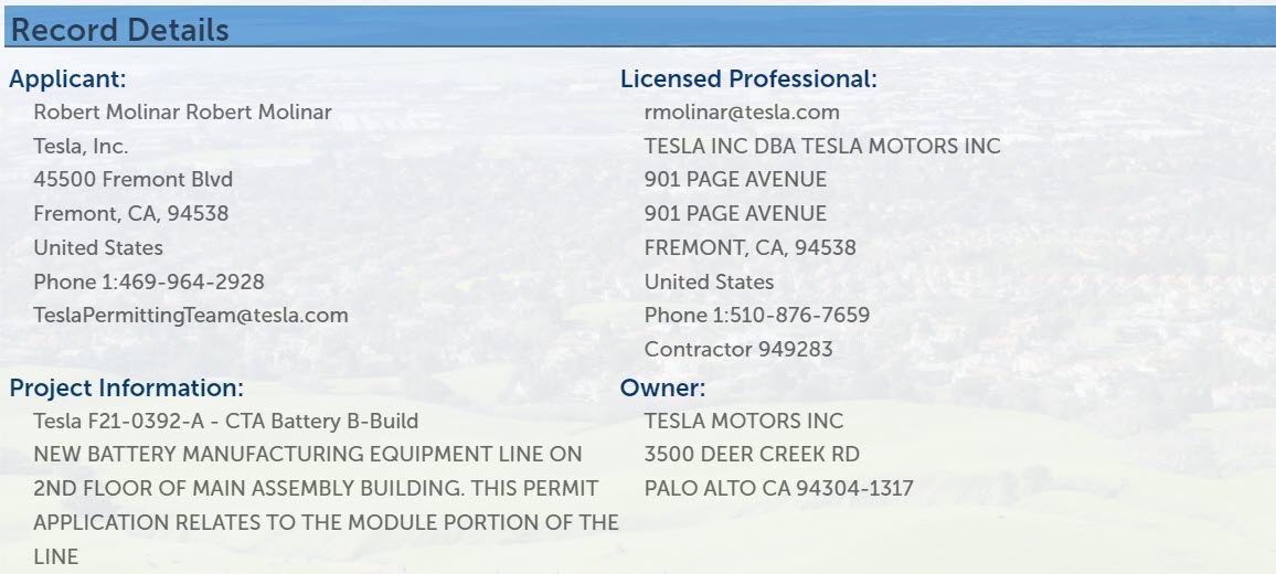 This isn’t the only permit related to a battery manufacturing line being added at Fremont. A separate $1.3 million application was also filed with the city to build a new maintenance office, storage area, production cells with equipment for hood, fender, and trunk lids, and offline cell manufacturing equipment on the first floor of the main assembly building, as reported by Teslarati.