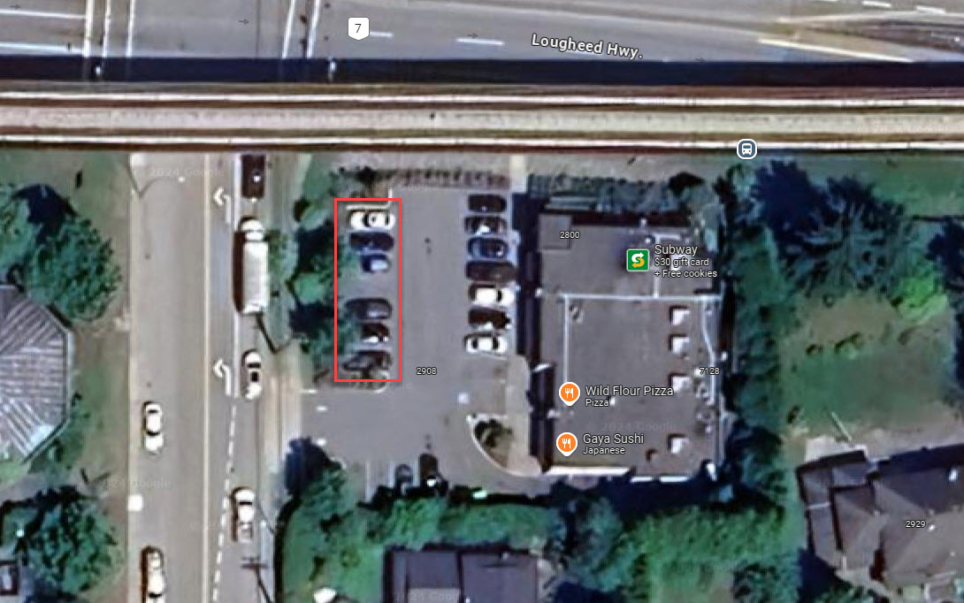 The new Supercharger is located in the very small parking lot at 2908 Bainbridge Avenue, just south of the Lougheed Hwy. As you can see in the photos below, the Supercharger looks like it will take up about half of the parking spaces in the entire lot, which is home to a Subway, Wild Flour Pizza, and Gaya Sushi restaurants.