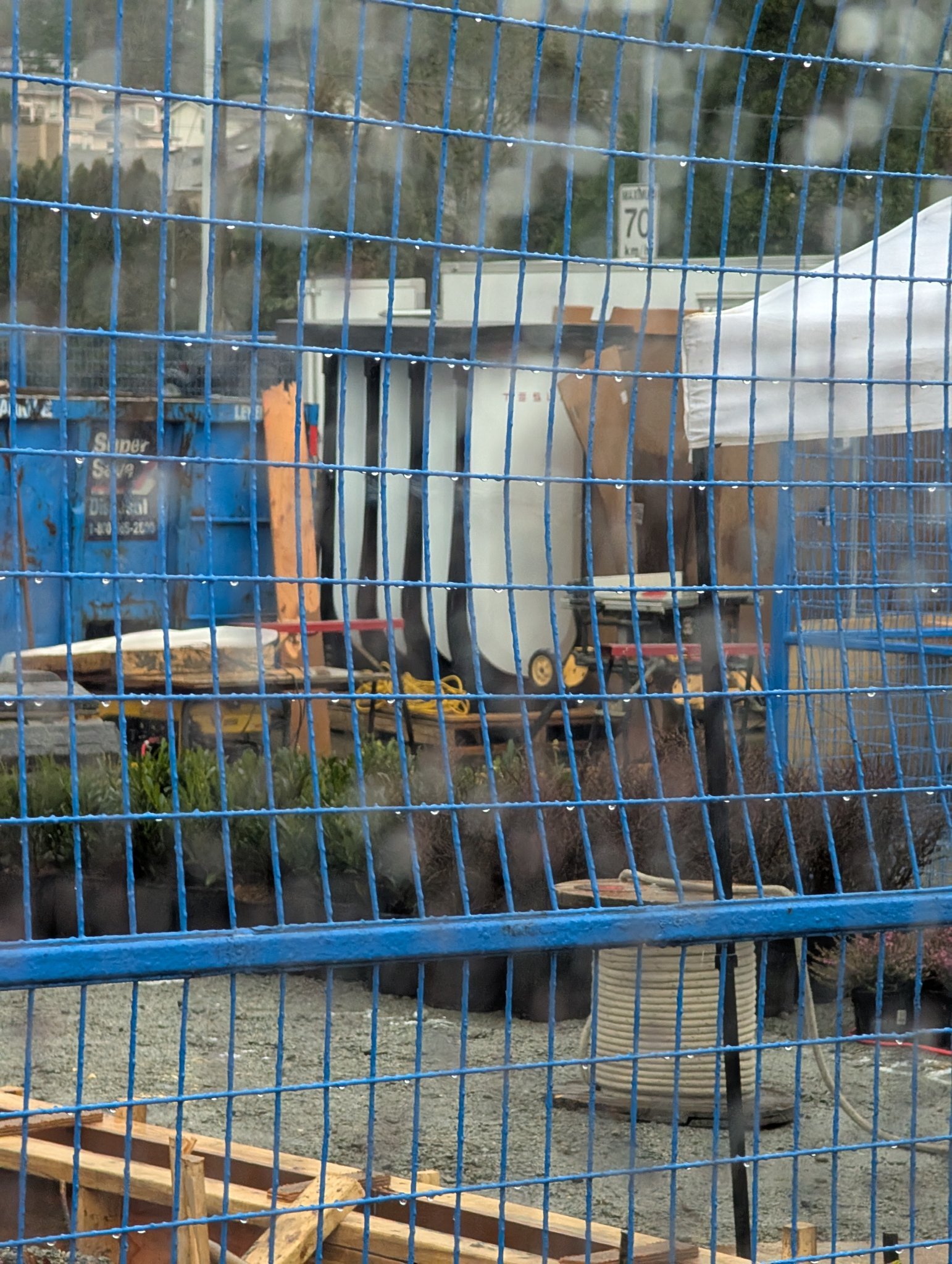 One of our readers Brian was able to drive by and check the site out for us this morning, and construction is in the early stages with crews still working on the concrete forms for the V4 Superchargers posts. We can’t tell how many posts there will be, but it looks like possibly just 6 based on the size of the parking lot.