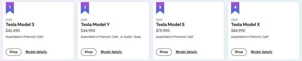 For the fourth consecutive year, Tesla has claimed the top spots on the Cars.com American-Made Index (AMI), reinforcing its status as the most American automaker when it comes to domestic manufacturing. The 2025 rankings are now live, and Tesla’s entire S3XY lineup — Model 3, Model Y, Model S, and Model X — occupies positions one through four on the list.