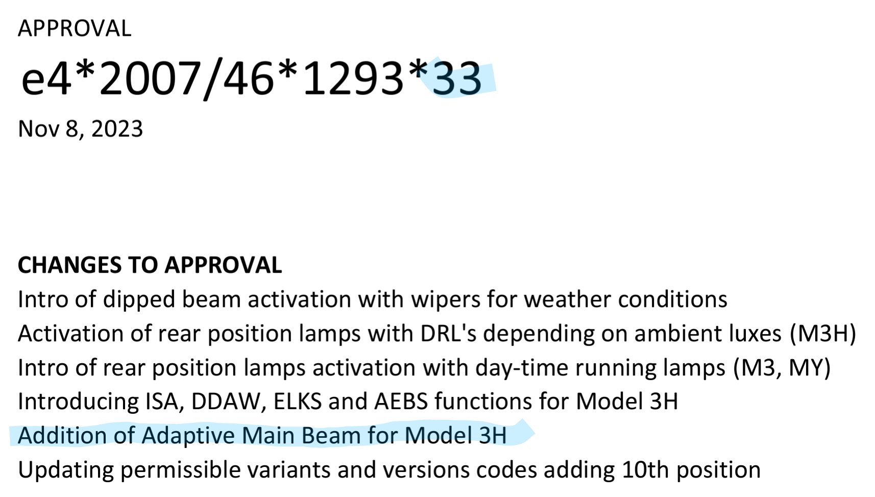 As you can see from the document, it also refers to the previous generation Model 3 and Model 3, noted as ‘M3’ and ‘MY,’ which is different than the new Model 3 (Model 3H). This could mean that the adaptive features will only be included on the new Model 3, and not come to the Model 3 and Model Y that have had these new headlights since 2020 and 2021 respectively.