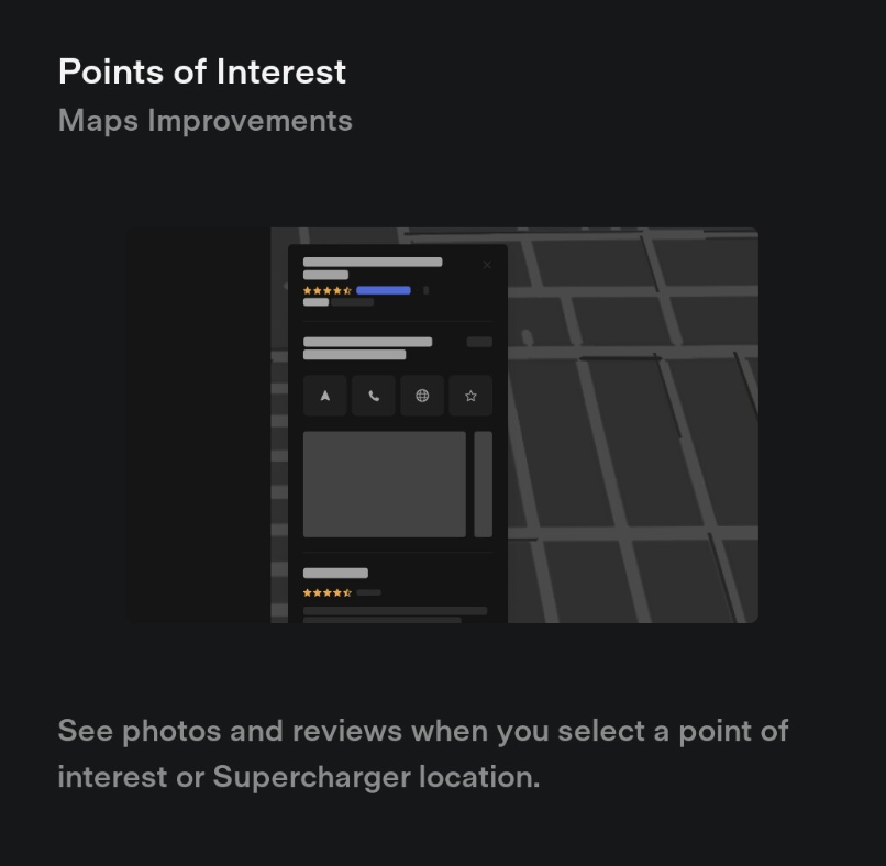 On the usability front, for those that have trouble reading the text on the screen, Tesla will now allow you to adjust the size of the text, providing two options – Standard or Large. Gone are the days of tapping each menu item to find what you are looking for as a search bar has been added to the in-car menu. Superchargers and Points of Interest on the map have also been improved with the addition of photos and reviews.