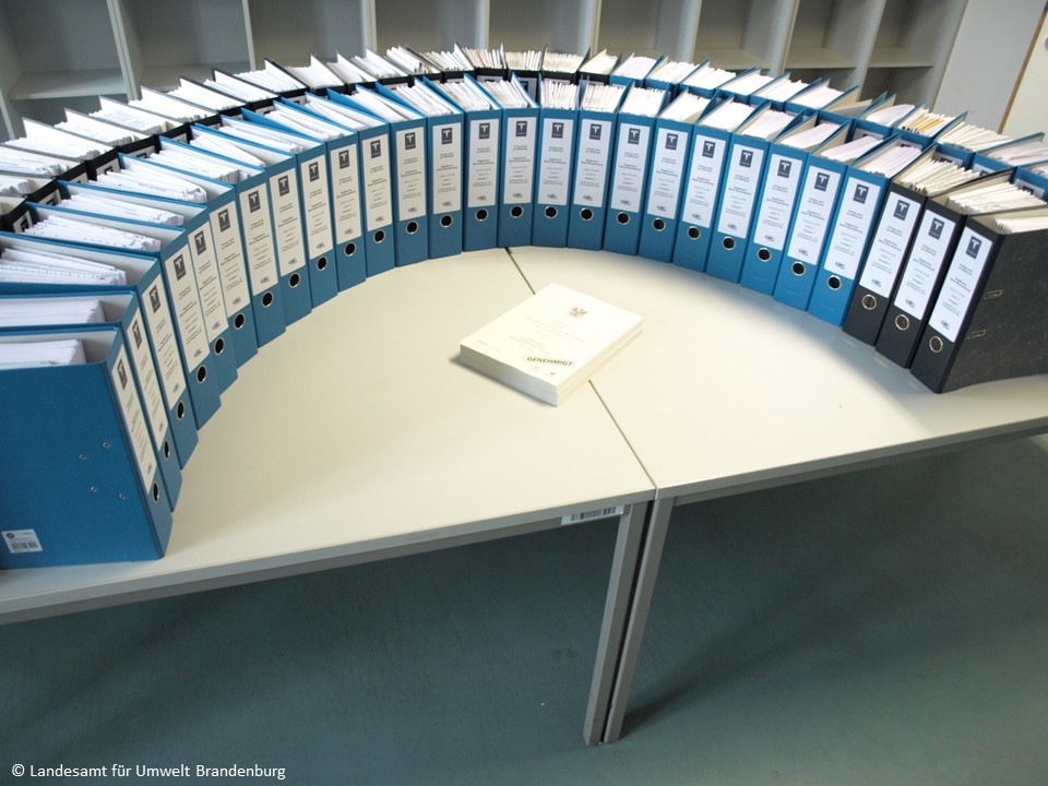 Showing just how much paperwork was required, the Brandenburg Ministry of Agriculture, Environment, and Climate Protection shared a photo of the 536-page approval surrounded by the thousands of documents and pages Tesla had to submit.
