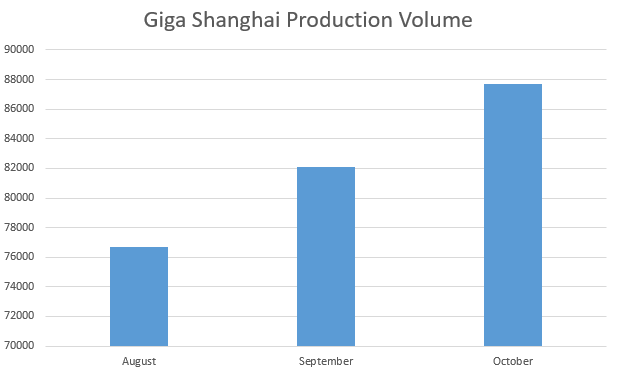 According to data from China Merchants Bank International (CMBI), Tesla built 87,706 new Model 3 and Model Y cars at Giga Shanghai in October.