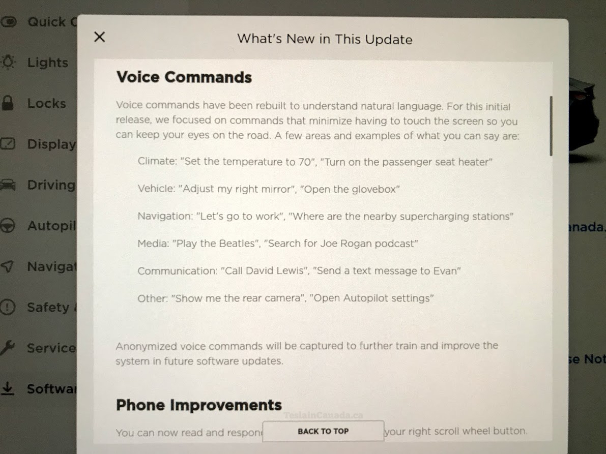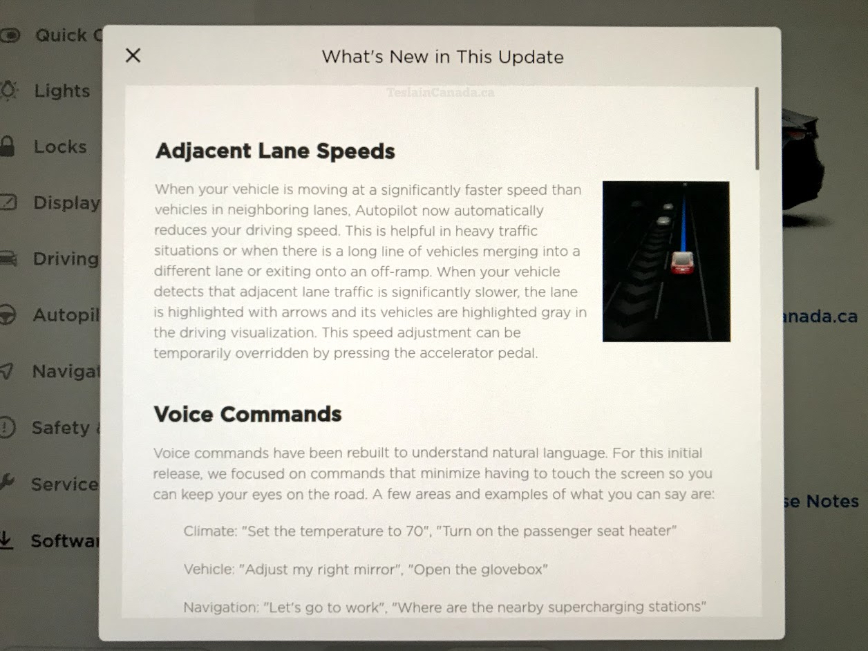 Unfortunately one of the biggest features of the software update, the improved driving visualizations that are part of the Full Self-Driving (FSD) sneak preview, is not being rolled out in Canada. Even those Tesla owners with the FSD package add-on and the HW3.0 computer are reporting no information about the driving visualizations in their release notes, and are not seeing the stop signs or stop lights while out driving.