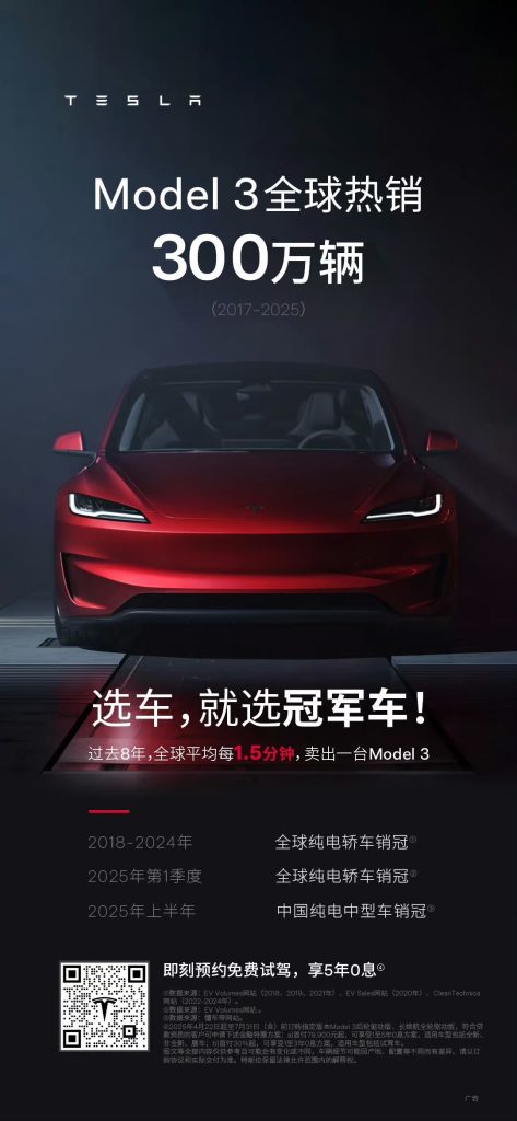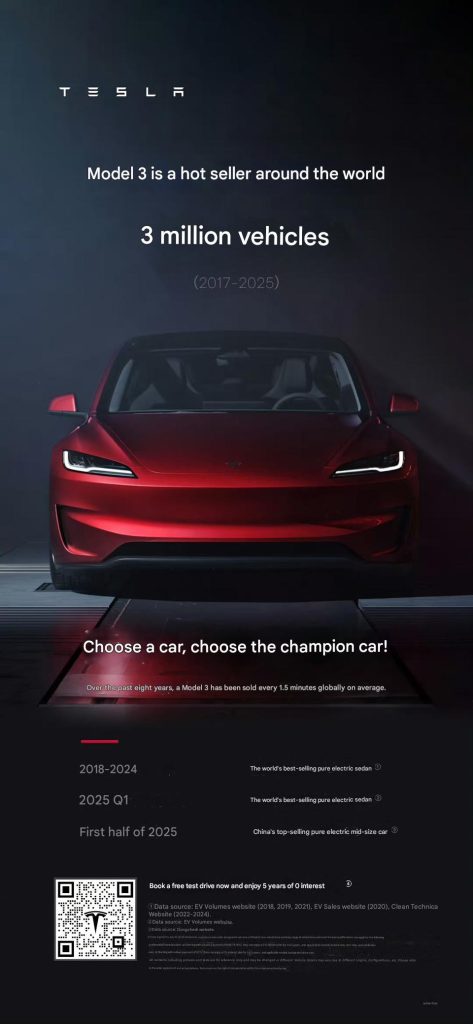 Tesla has announced a new sales milestone — 3 million units of the Model 3 have been sold worldwide since its debut in mid‑2017. While this benchmark is remarkable in its own right, it becomes even more impressive when considered in relation to the time the vehicle has been on sale. With 3 million units sold, that equates to a staggering pace of approximately one car every 90 seconds over the past eight years.