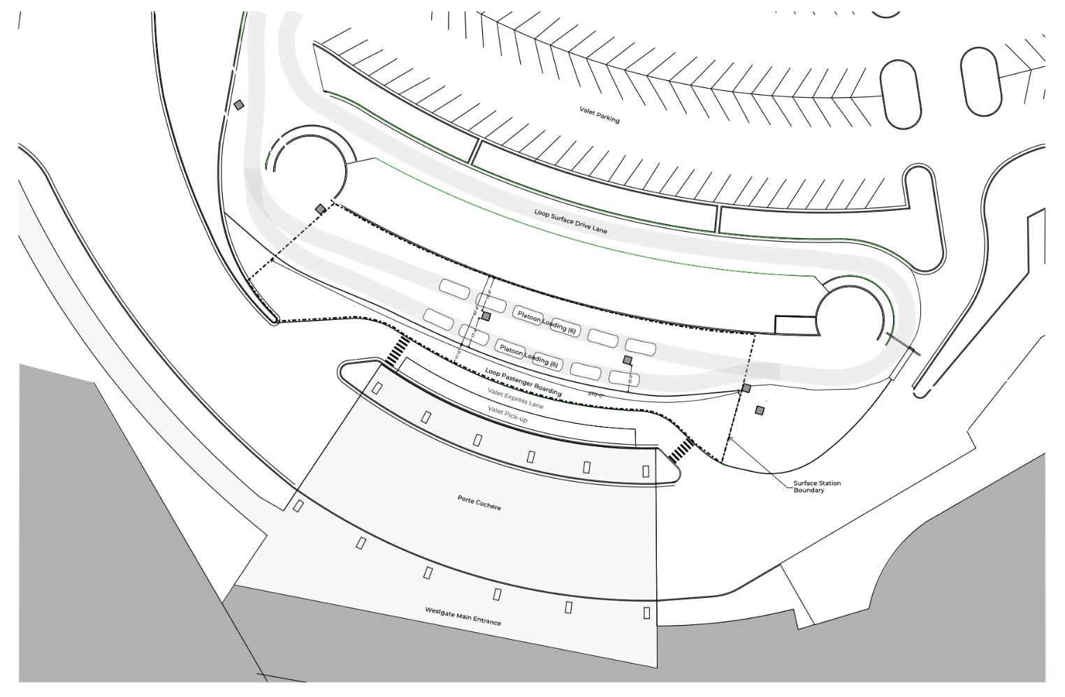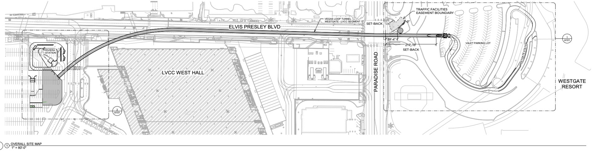 As p12a12 points out, “The connection to the Westgate (the tunnel on the right of the image) looks like it will be entirely under the surface. The tunnel connecting this station to LVCC West (the tunnel on the bottom of the image) will pop up to the surface to join the existing station.”