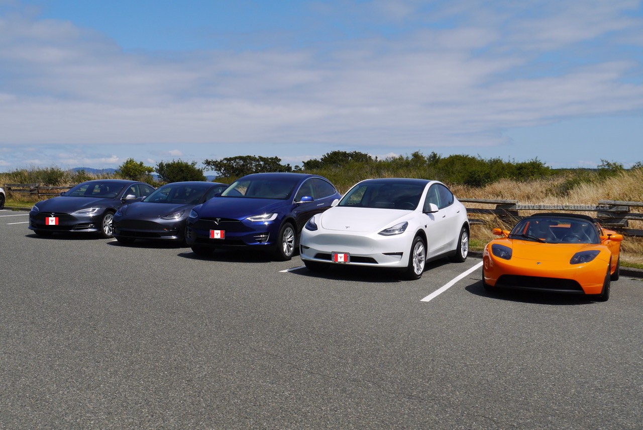 Pictured here are a 2017 Model S (Kirsten), 2019 Model 3, 2018 Model X (Heather), 2020 Model Y (Orest), and a 2010 Tesla Roadster (Richard, more on this car coming soon!). Special thanks to the owners for helping to make this happen.