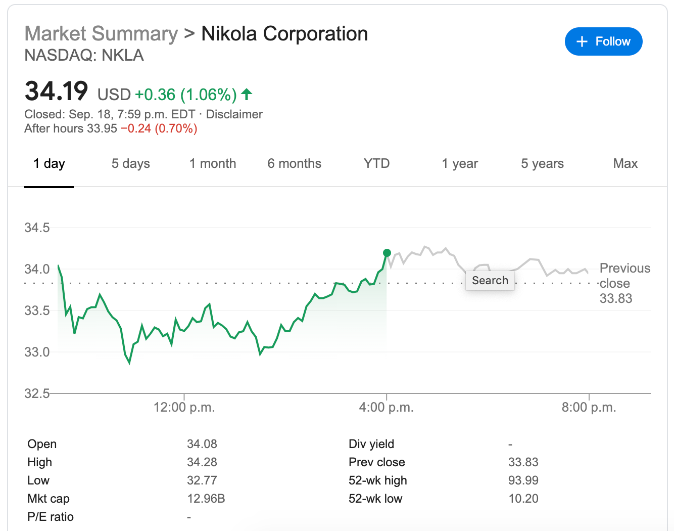Even with the bad news, Nikola (NKLA) share prices have remained fairly steady since the initial drop after the report was published. Shares closed at $34.19 on Friday, down from a high of just over $50 after the deal with GM was announced.