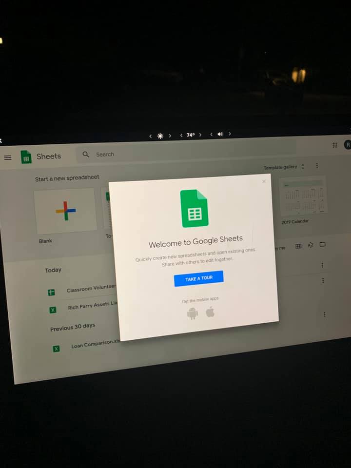 With the access to Youtube in Tesla’s Theatre, you can also log-in to your Google account through Youtube. Doing this gives you access to all the other apps, like Google Sheets, Google Photos, and Google Drive, as seen in these photos below.