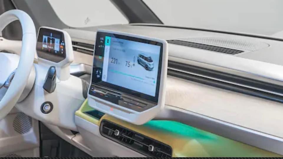 Inside the minibus, the dashboard is very reminiscent of the other ID electric vehicles, and we get to see the how they carry through the two-tone colour scheme into the interior.
