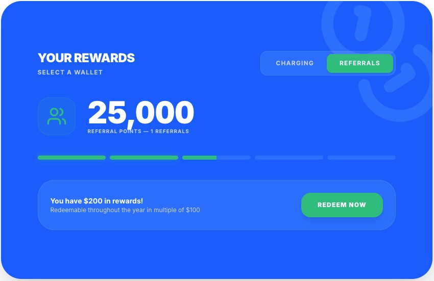 A key structural change is the introduction of separate “Points Wallets.” Charging Points and Referral Points are now divided into two distinct wallets, giving users a clearer breakdown of their earnings. Owners can toggle between the two to see total charging sessions, verified charging points, and successful referral activity.