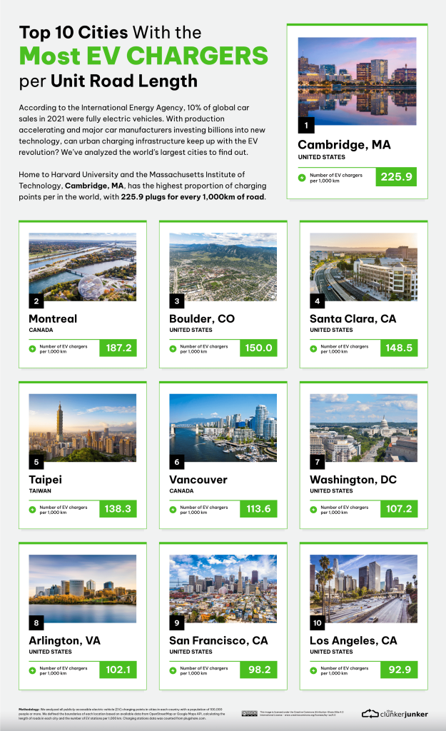 1. Cambridge, MA, USA – 225.9 chargers per 1,000 km