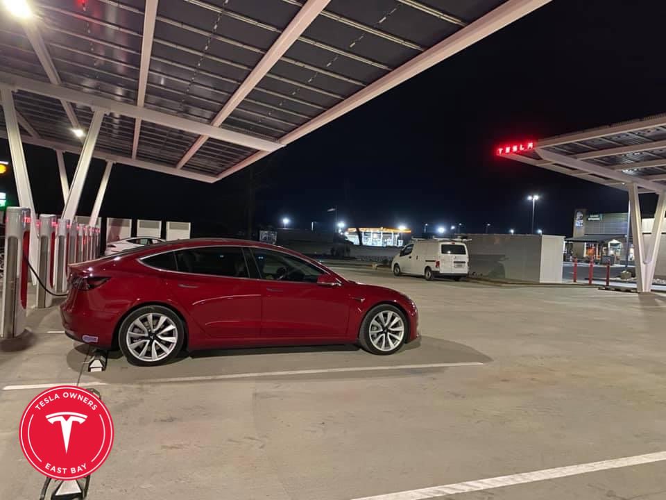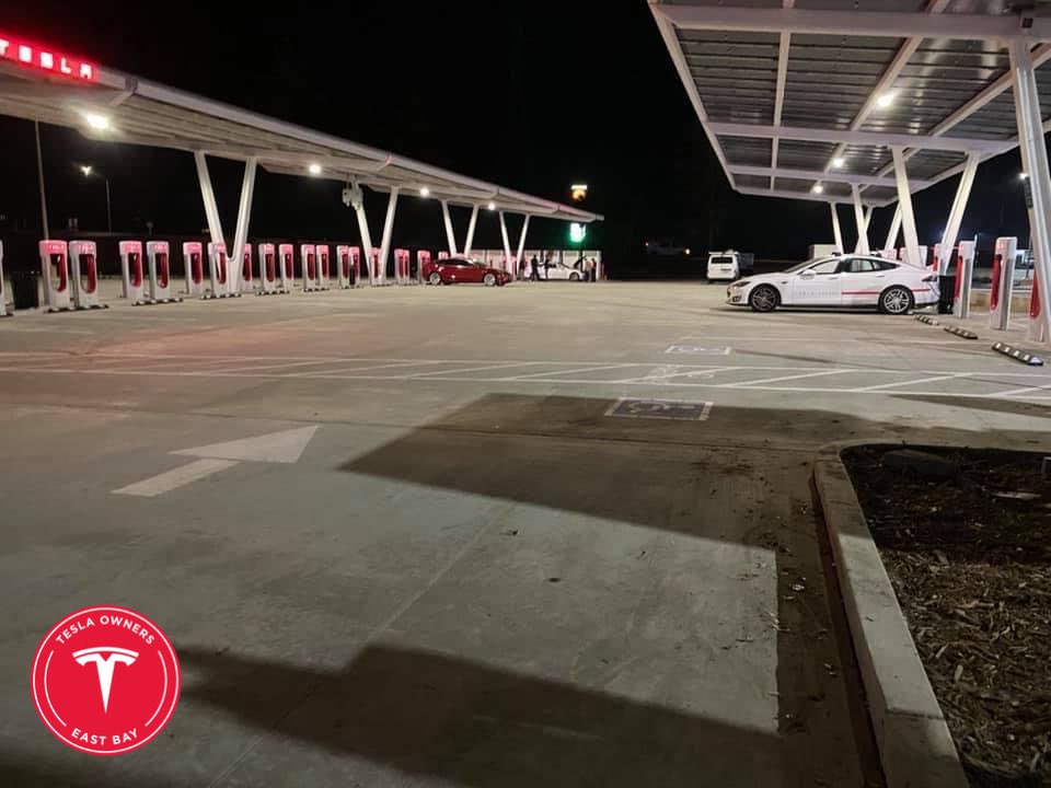 According to Tesla Owners East Bay, one of their members Teresa K. made the discovery completely by accident. After topping up her red Tesla Model 3 at Kettleman City, Teresa travelled north along Interstate 5. Fortunately for Teresa, her dog apparently drank too much and nature was calling, forcing her to stop. Much to her surprise, she discovered the 56-stall Supercharger lit up and ready to charge.