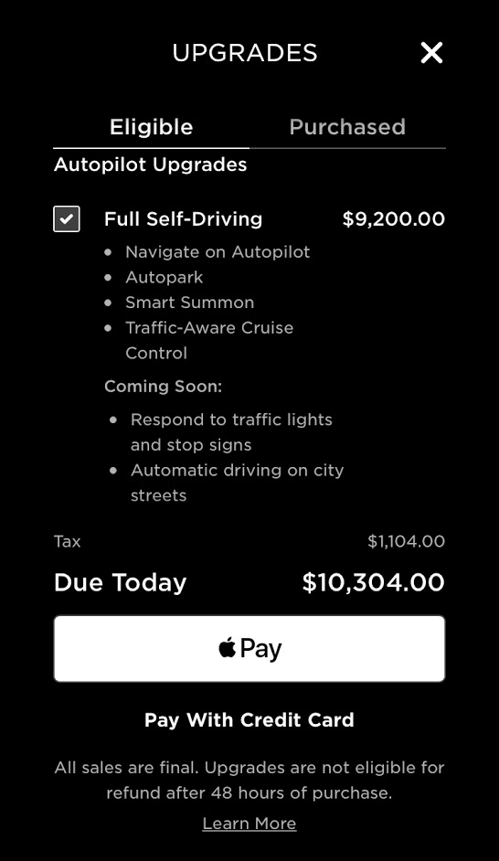 Now it appears Tesla has taken a further step to help prevent that issue by allowing refunds for up to 48 hours after the purchase of an upgrade, while still saying “All sales are final.” The change only appears in the mobile app, as it is not quite as easy to mistakenly purchase the upgrades on a computer.