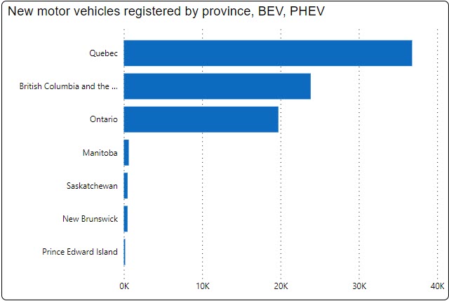 As you can see Stats Can figures includes plug-in hybrid when calculating ZEV adoption. When considering battery electric vehicles (BEVs), a total of 58,726 were registered in 2021, up from 39,036 in 2020.