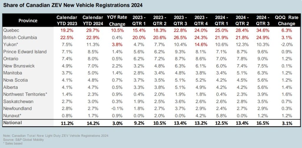 While Q3 2024 showcased promising growth, challenges remain. S&P Global notes the pace of charging infrastructure development, economic factors, and potential changes in government policies could influence future adoption rates. Nonetheless, forecasts are optimistic. ZEVs are expected to account for 19.0% of vehicle sales in 2025, rising to 30.7% by 2027. These projections reflect Canada’s commitment to meeting climate goals and transitioning to a cleaner transportation system.