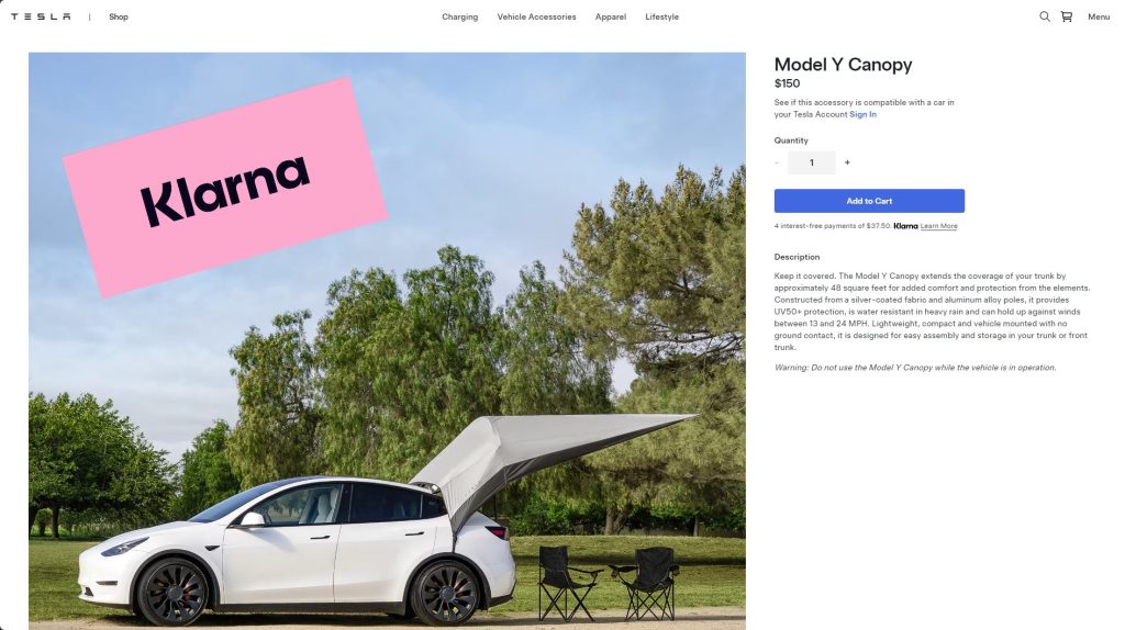 Tesla Shop gets financing option through Klarna in the US