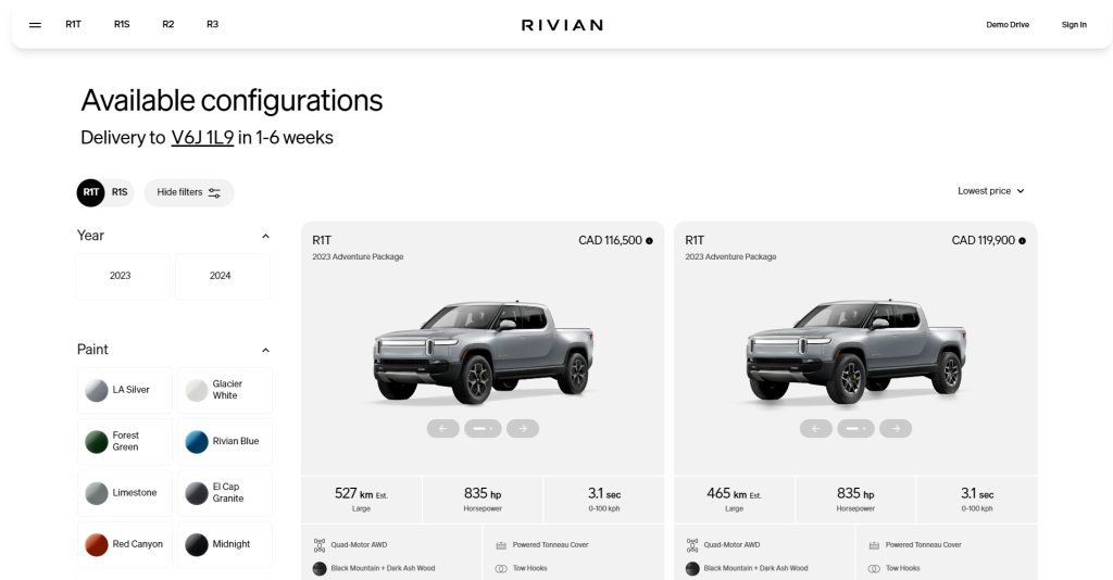 Rivian Shop opens in Canada for non-reservation holders, delivery in as little as 1 week