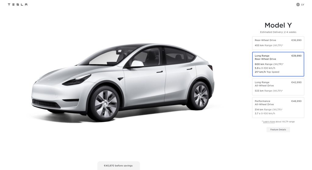 Tesla launches Model Y Long Range RWD in Europe