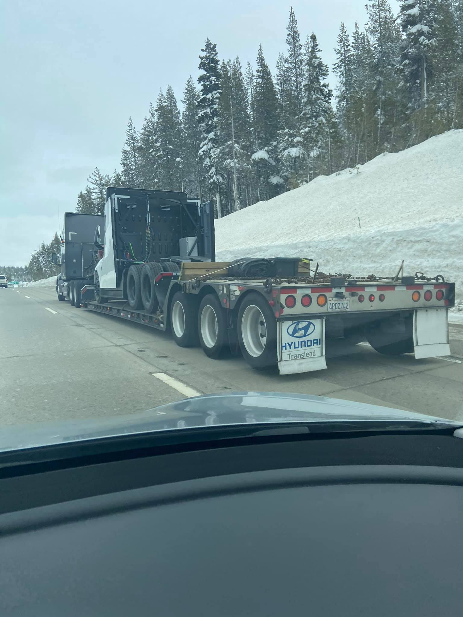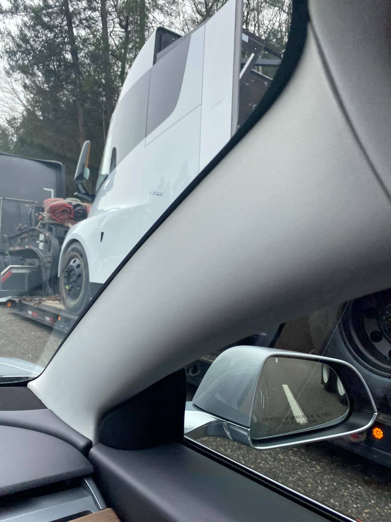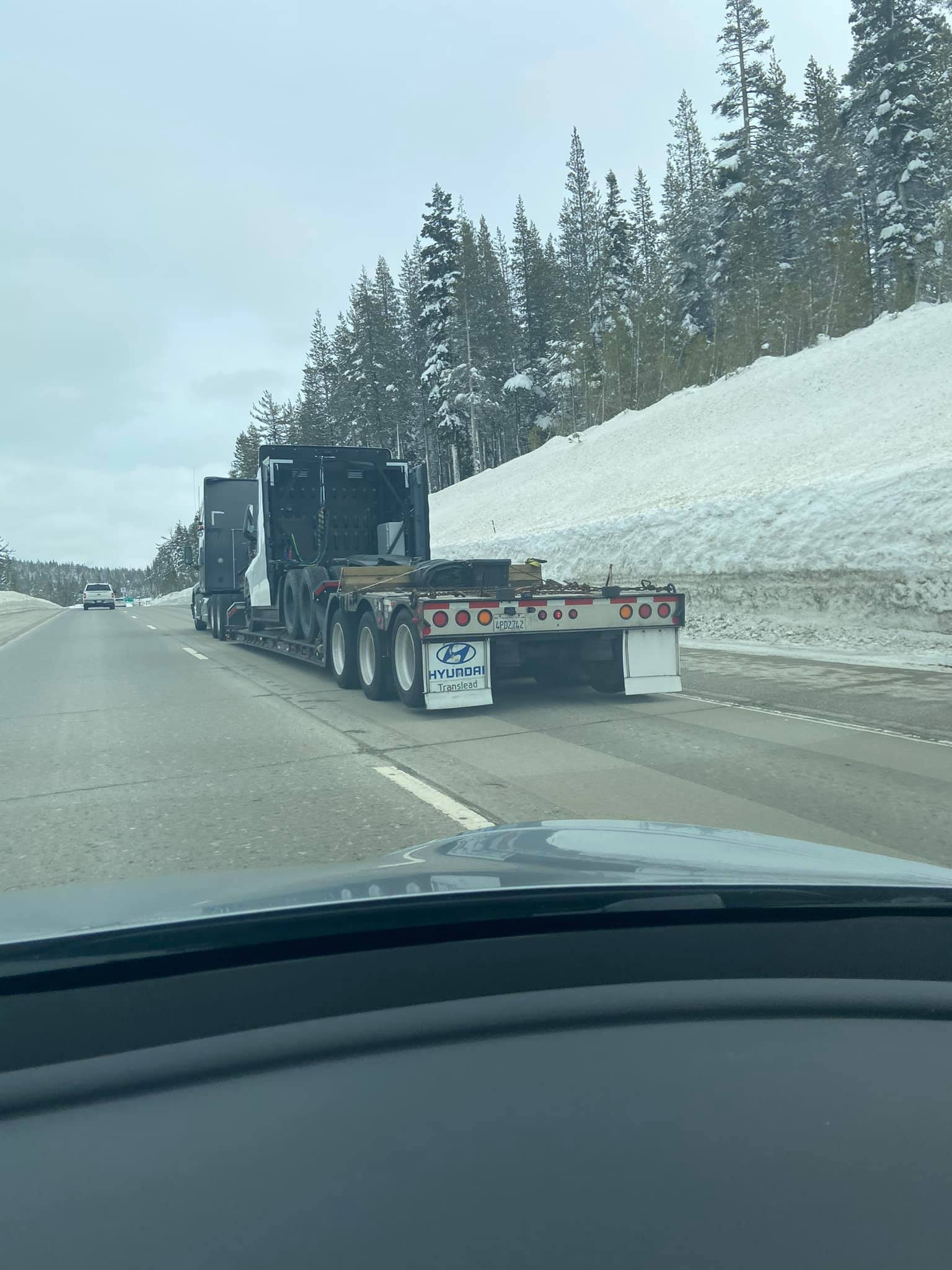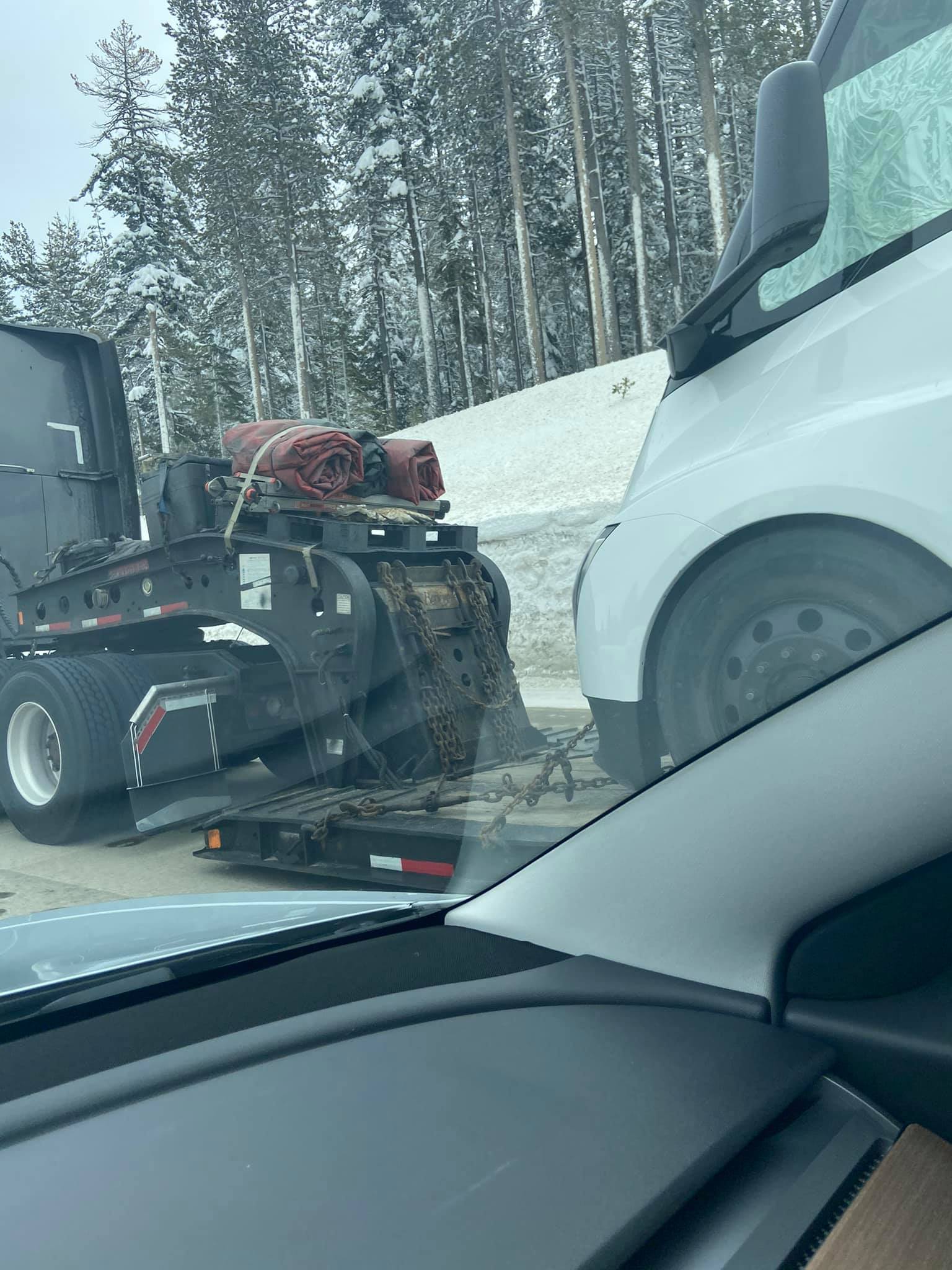Now another build of the newly designed Semi has been spotted heading east on Interstate 80 near Truckee, California. The photos, taken by Jerome Mends-Cole II and shared to Twitter by Tesla Owners NorCal-Reno, give us a up-close look at some details showing it is a different truck than previously seen by The Kilowatts.