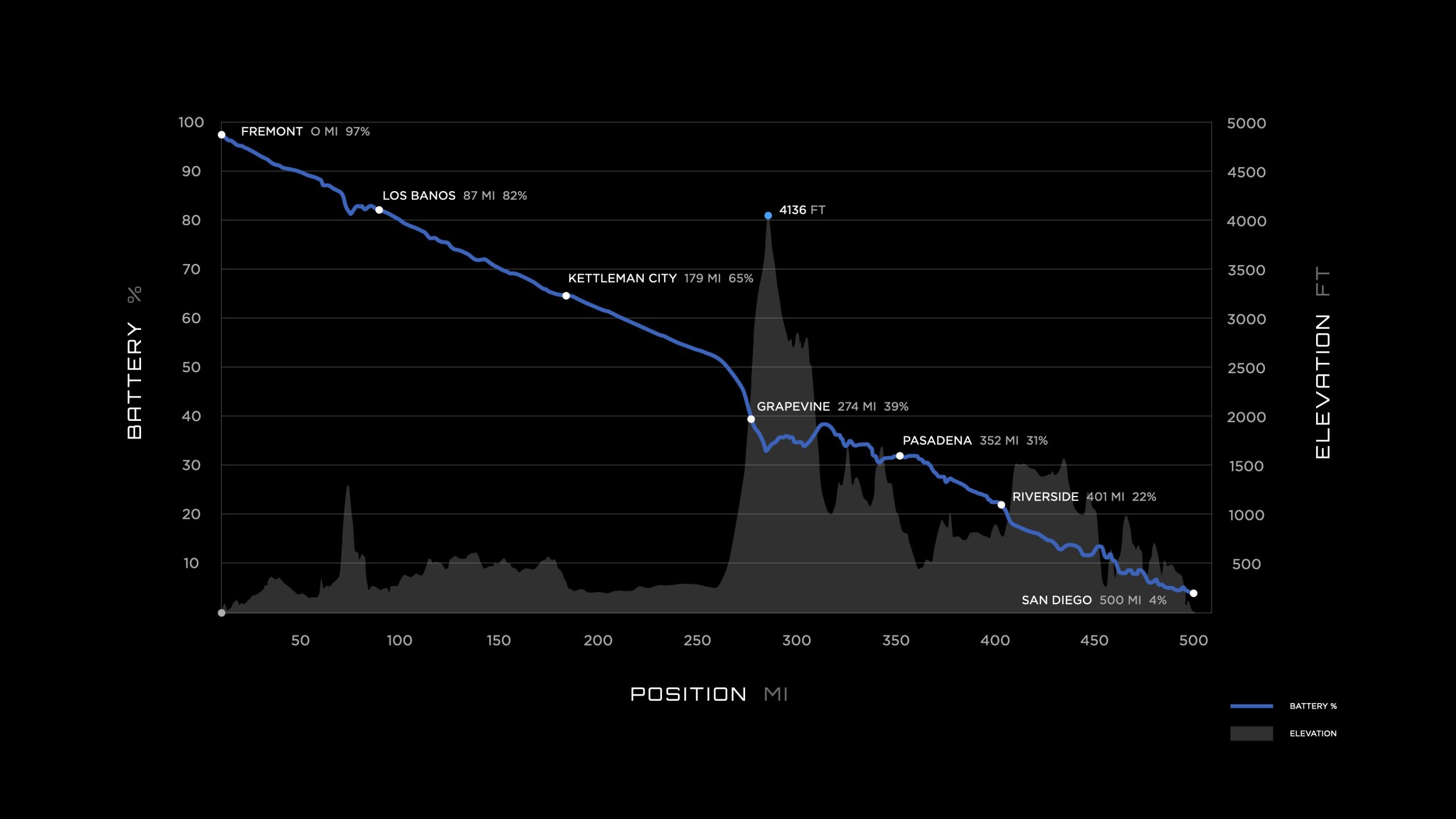 Musk also provided more details on the recent 500-mile range test, confirming it was done on a single change and in real-world traffic conditions from Fremont to San Diego. The stats showed it could have actually travelled further as it started with a 97% charge and ended with still 4% remaining, indicating the 500 miles used up 93% of its battery.