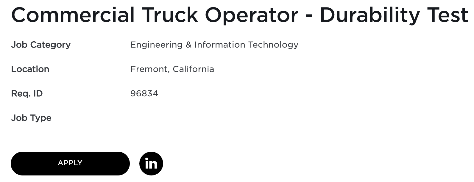 This isn’t the only job posting currently published on Tesla’s Career website related to testing of the Semi.