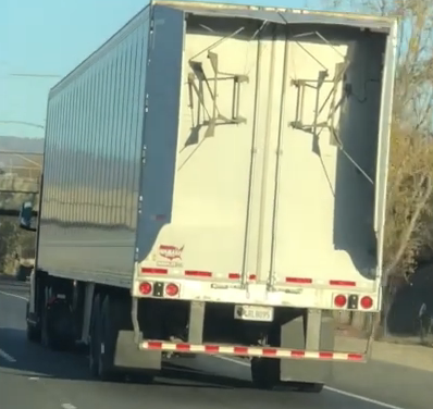 In a video captured yesterday, November 19 2020 and sent to Drive Tesla, the silver Semi was driving northbound on Hwy 101 near San Jose, California. The Semi was loaded with a container on the back, with unique fins on the rear doors presumably to improve aerodynamic efficiency.