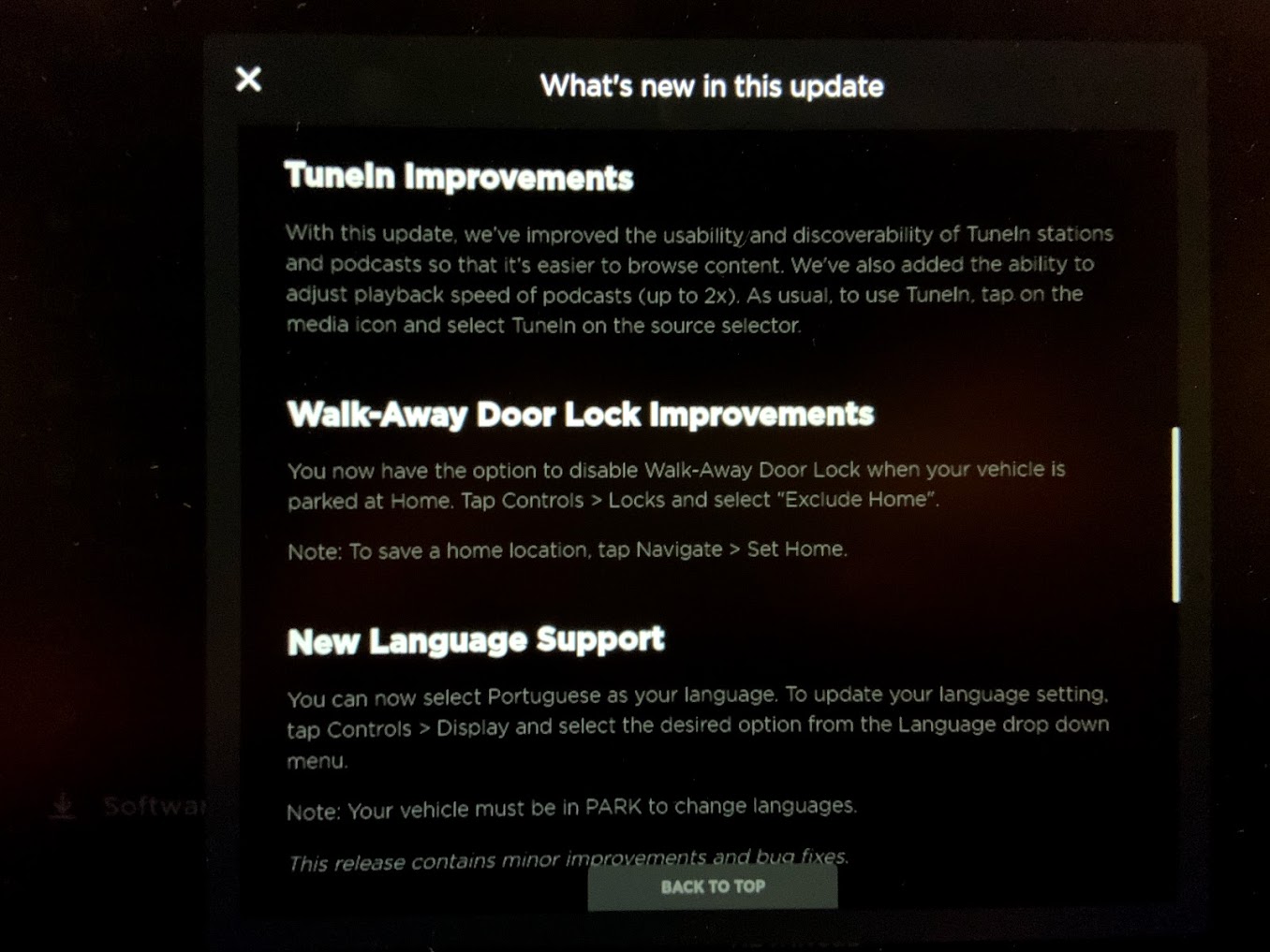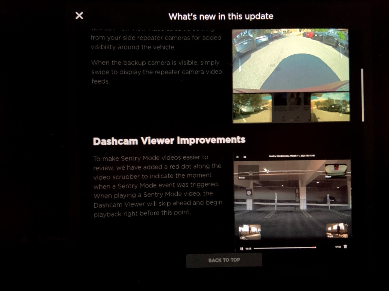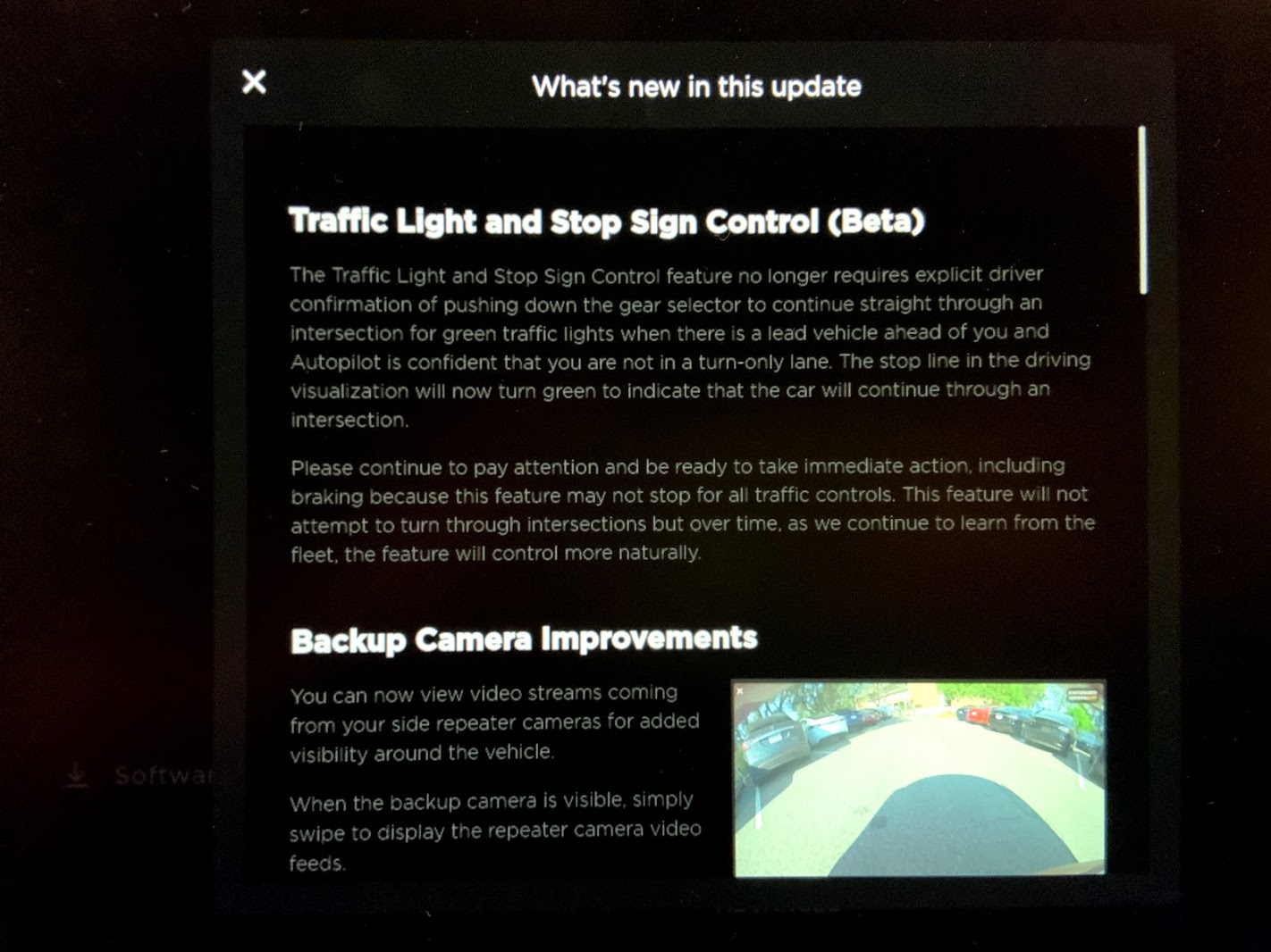It contains not only green light traffic control, but also the new backup camera improvements, dashcam viewer improvements, walk-away lock improvements, and two other minor updates. Interestingly, the controversial activation of the cabin camera is not included in this release as it was in the US.