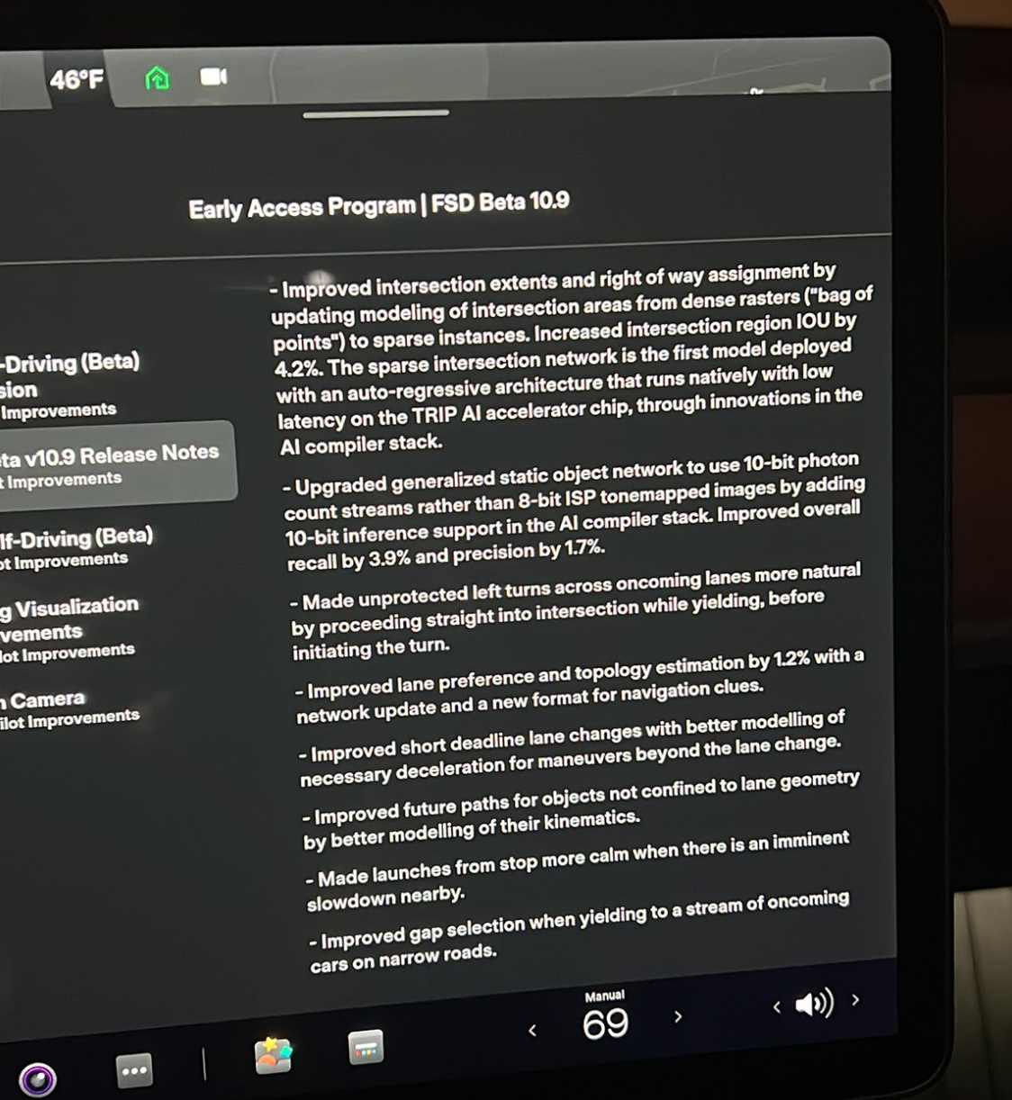 According to the official release notes of FSD Beta 10.9 shared by Jer (@jereking23) on Twitter, the update includes a number of improved behaviours.
