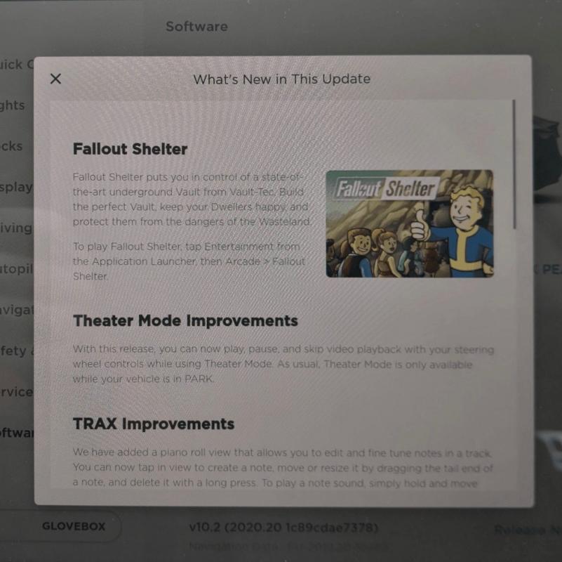 Probably the biggest part of the update so far is the addition of a new game to the newly redesigned Toybox. Fallout Shelter, which we learned last year near the release of Cuphead was eventually coming to Tesla vehicles, is a popular mobile simulation video game developed by Bethesda Game Studios.