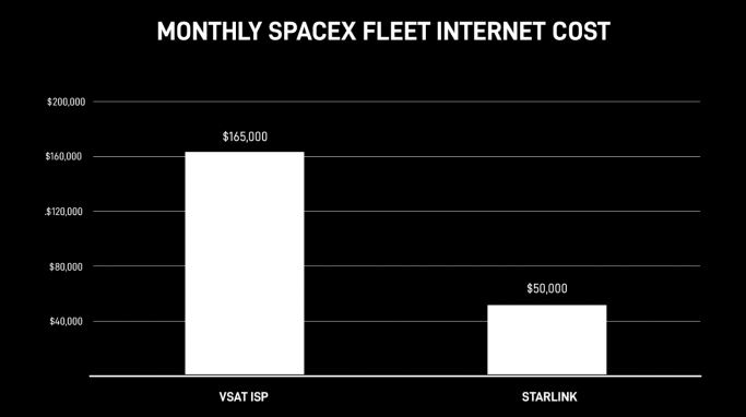 Interestingly, before Starlink, the internet was one of the top costs for SpaceX’s maritime fleet. SpaceX paid over $165,000 per month for 25 Mb/s download and 25 MB/upload of pre-paid bandwidth.