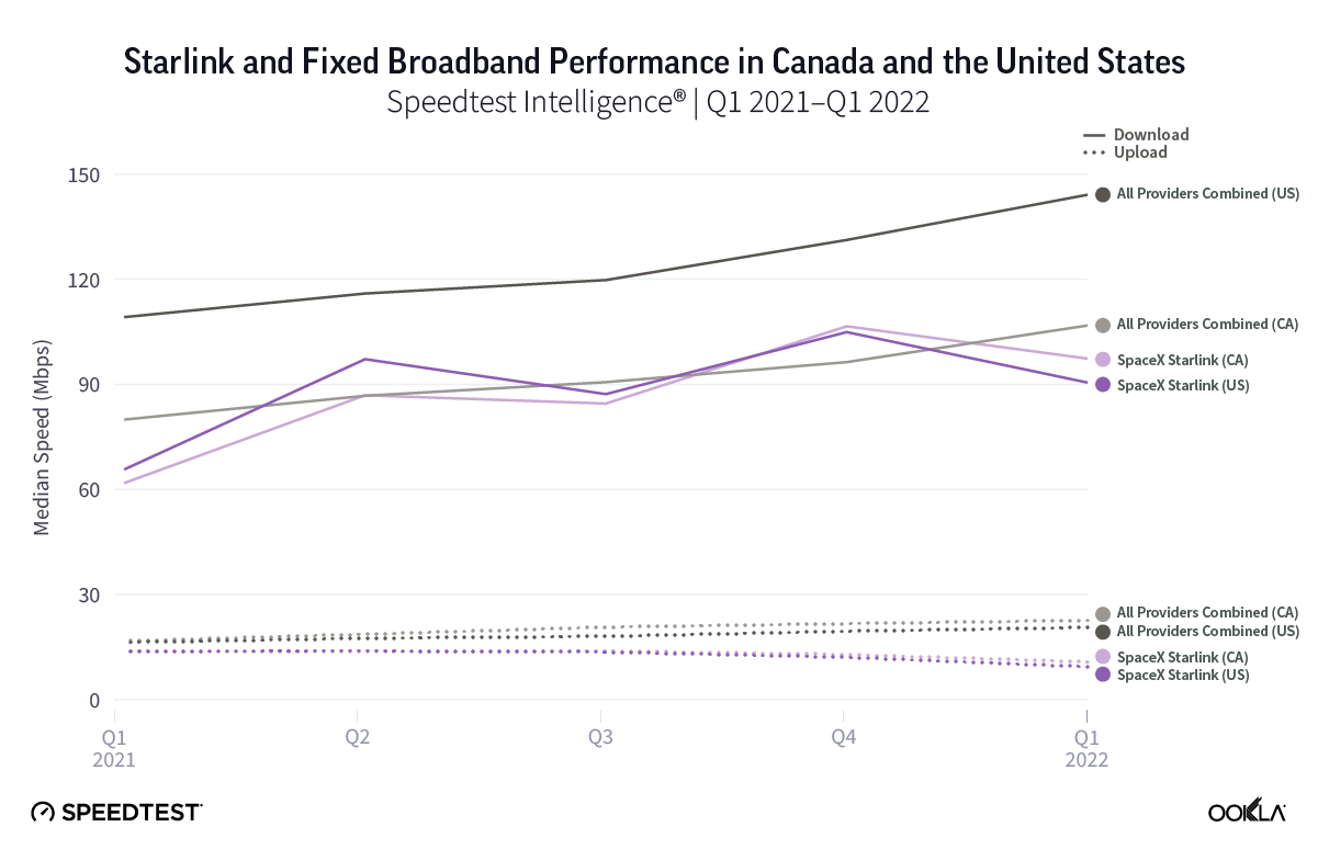 SpaceX’s Starlink satellite internet service has been growing rapidly since its launch in 2020, now with more than 400,000 subscribers around the world. For those subscribers in Canada and the United States, download speeds have increased over the last year, but upload speeds have decreased.