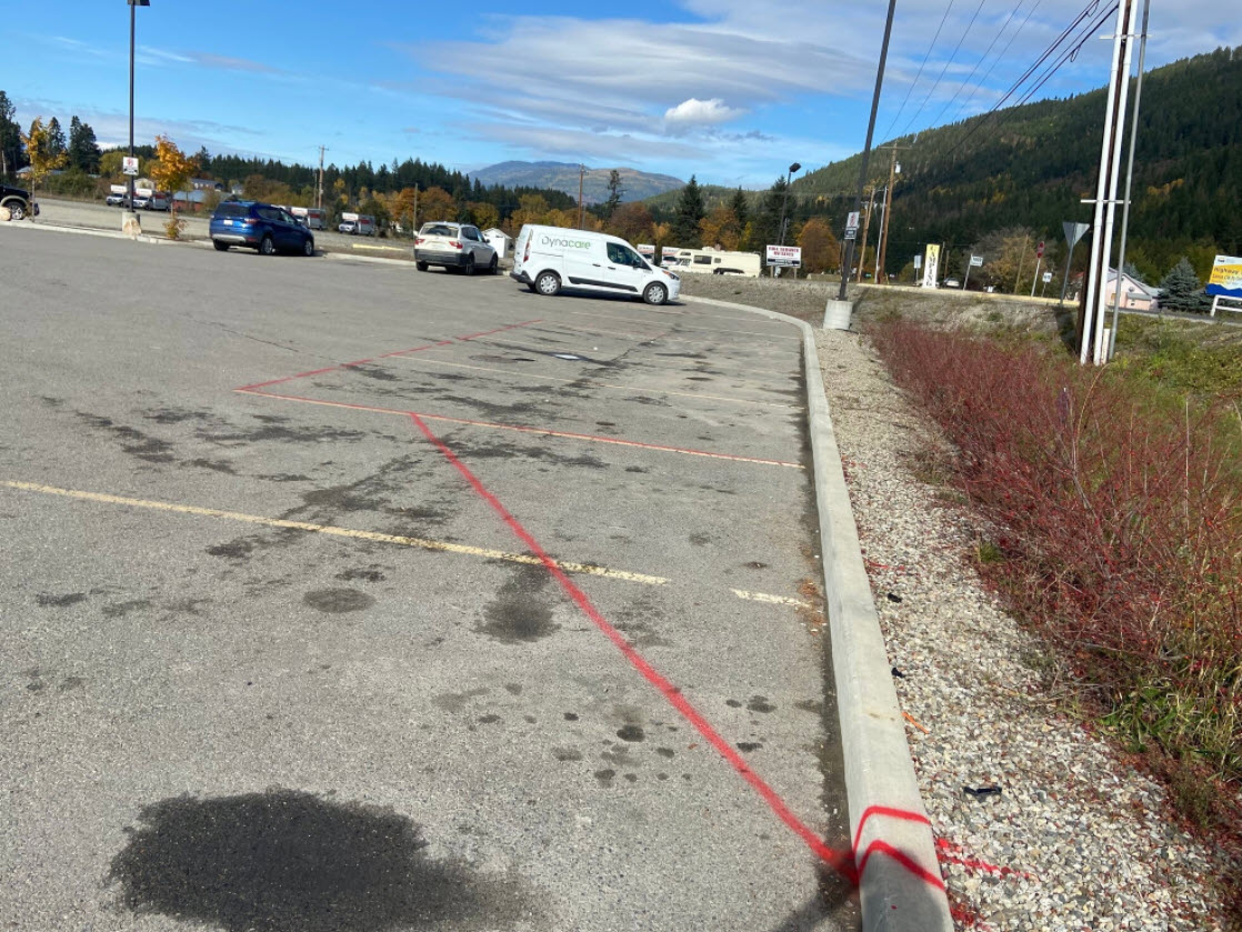 In mid-October SparkPower brought their construction trailer and some supplies to the site at the Creston Ramada. Crews even went so far as to outline the location of the stalls in the parking lot with red spray paint.