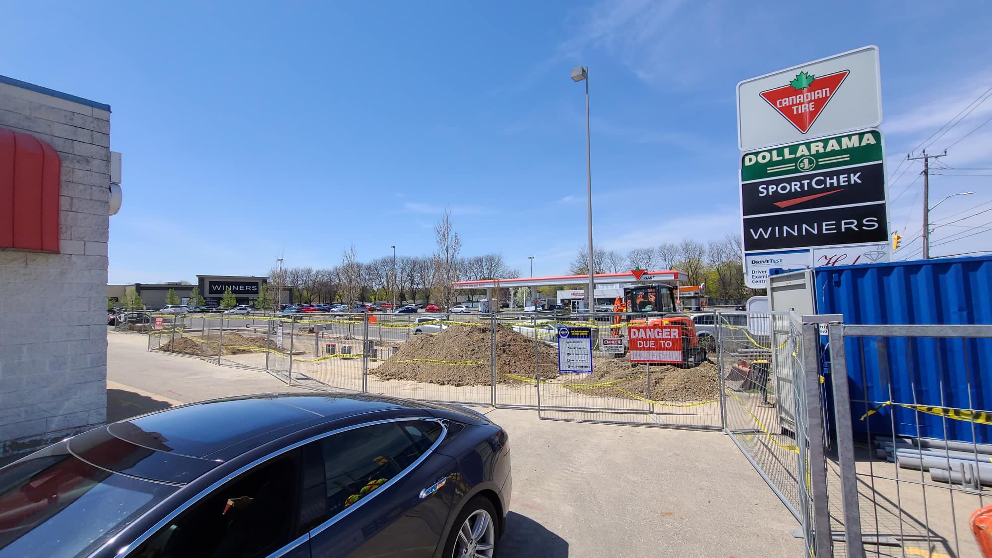 The new Supercharger is being built at 142 Queensway East in the parking lot near the Canadian Tire. According to a photo of the construction shared by Chantal Zoard on the Tesla Owners Club of Ontario (via TMC), the station looks like it will feature 8 V3 Superchargers stalls upon completion.