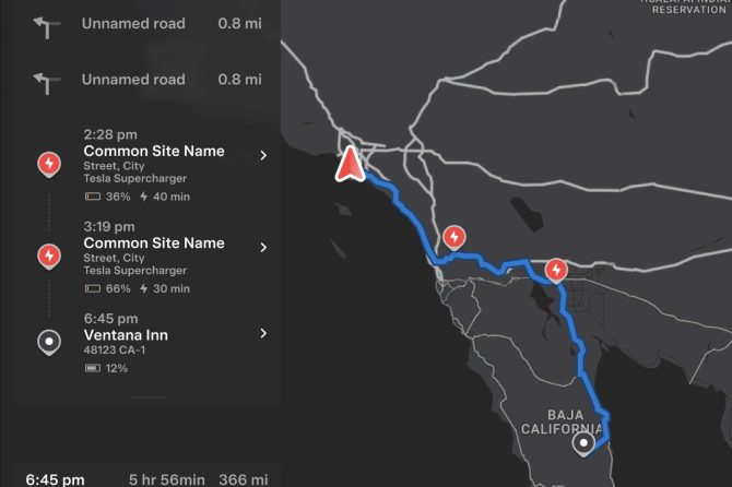The new Kettleman City (Bernard Drive) Supercharger has already been added to the in-car navigation, but shows that “only” 55 stalls are available. It also doesn’t state any are out of order.
