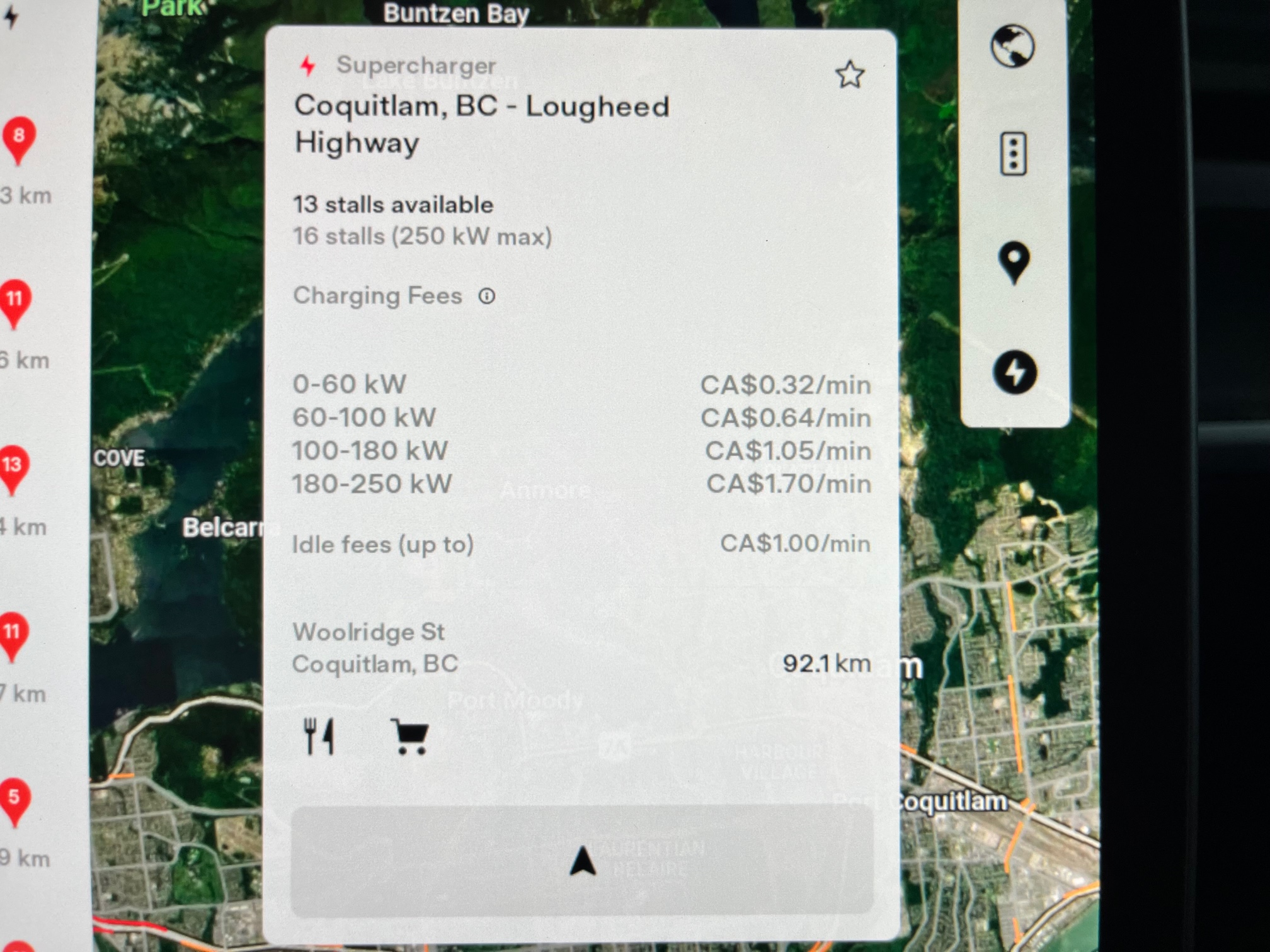 Recognizing the high demand, Tesla has added four new V3 stalls, bringing the total number of stalls in Coquitlam to 16. The additions are now visible in the in-can navigation.