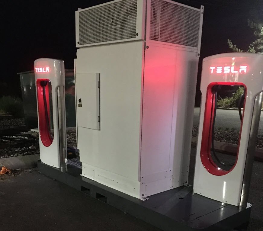 While construction on those two sites continues, Tesla has added two new temporary stalls to the 8 stall Supercharger on Airport Rd. Photos shared on TMC show two new Superchargers with their own cabinet sitting on their own platform have been added next to the existing stalls, indicating they may just be a temporary addition.